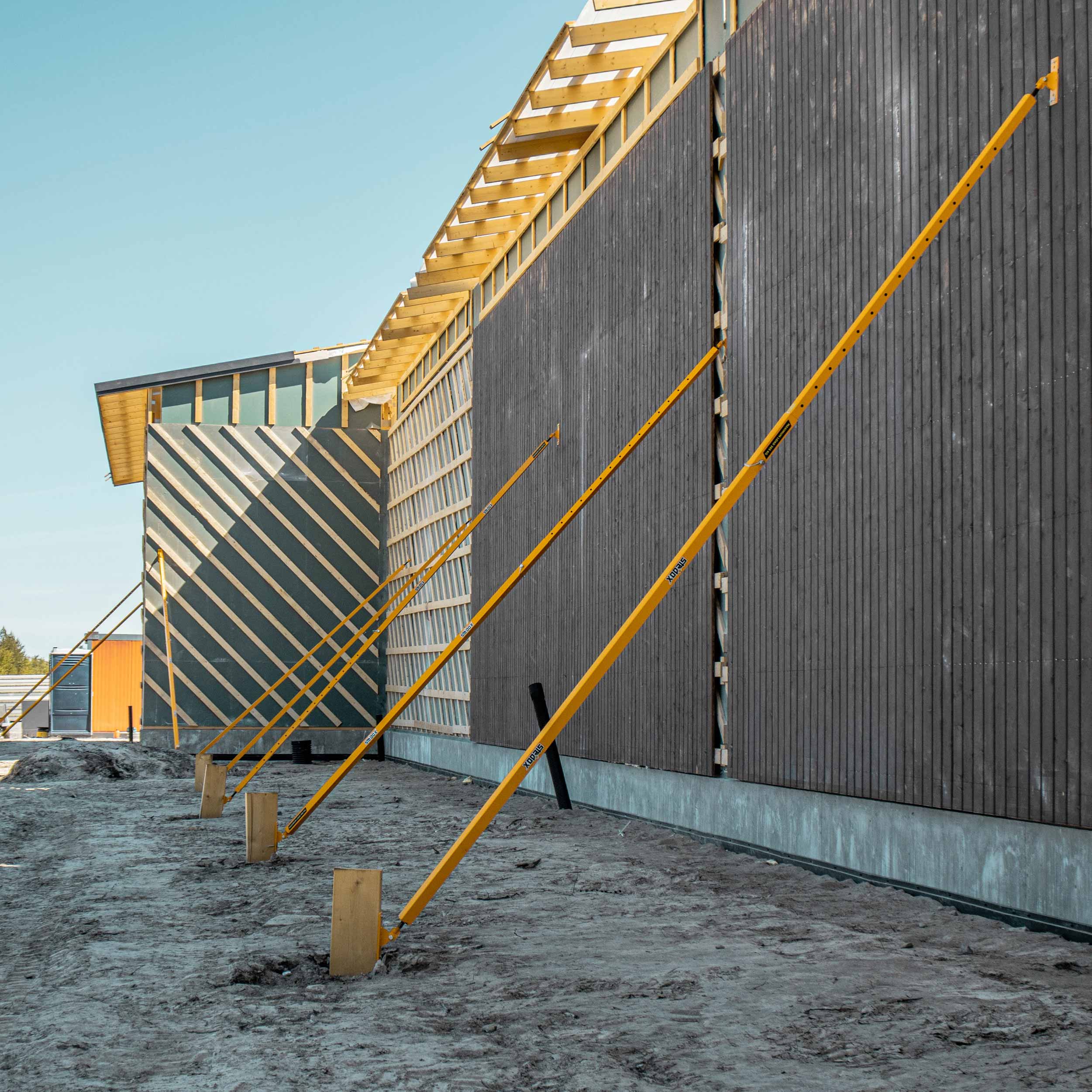 Yksi asentaja pystyy asentamaan seinäelementtiä elementtituen yksinkertaisen säädön avulla.